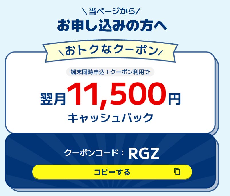 \ 翌月に11,500円キャッシュバック/