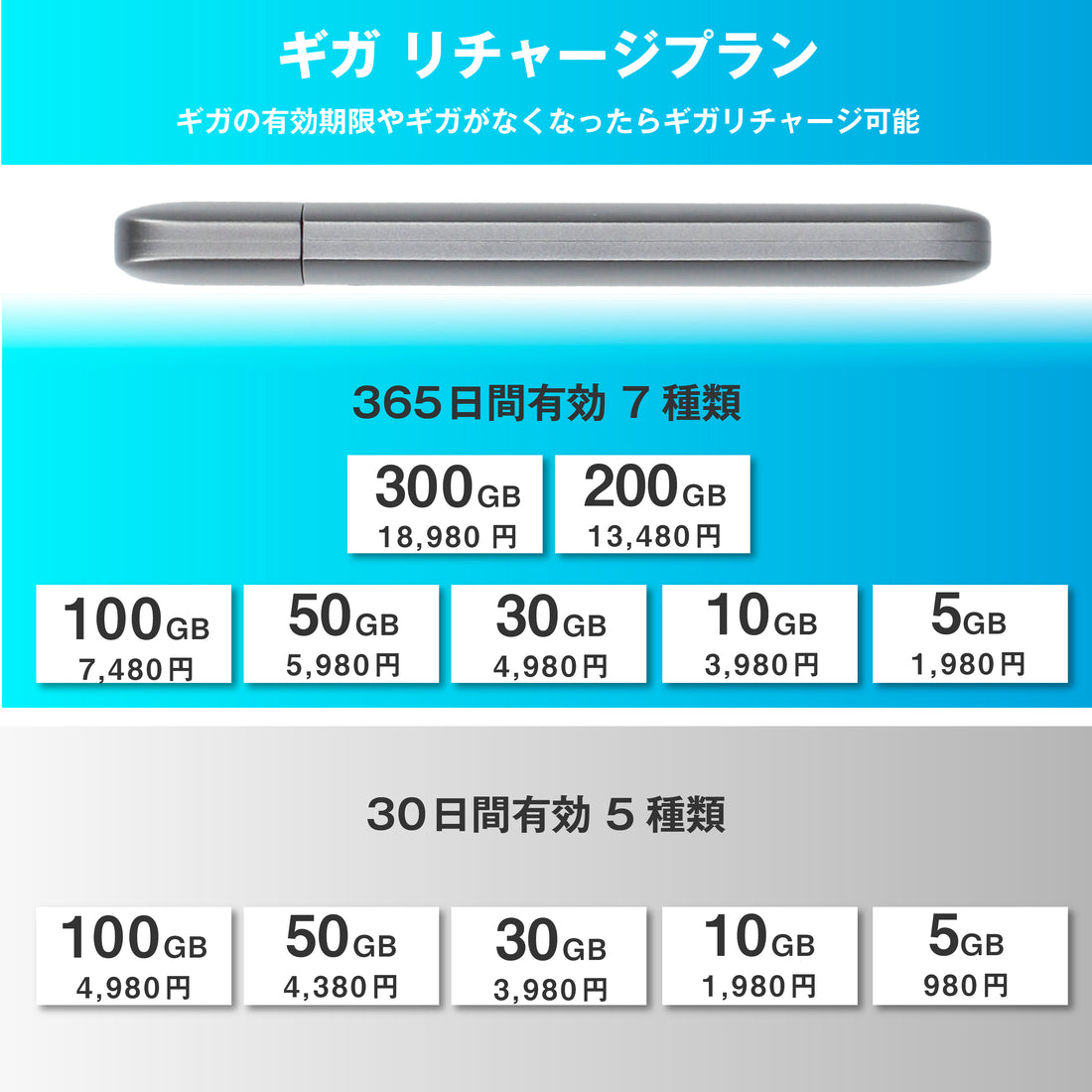 - 必要なデータ量だけチャージ可能、海外利用も対応