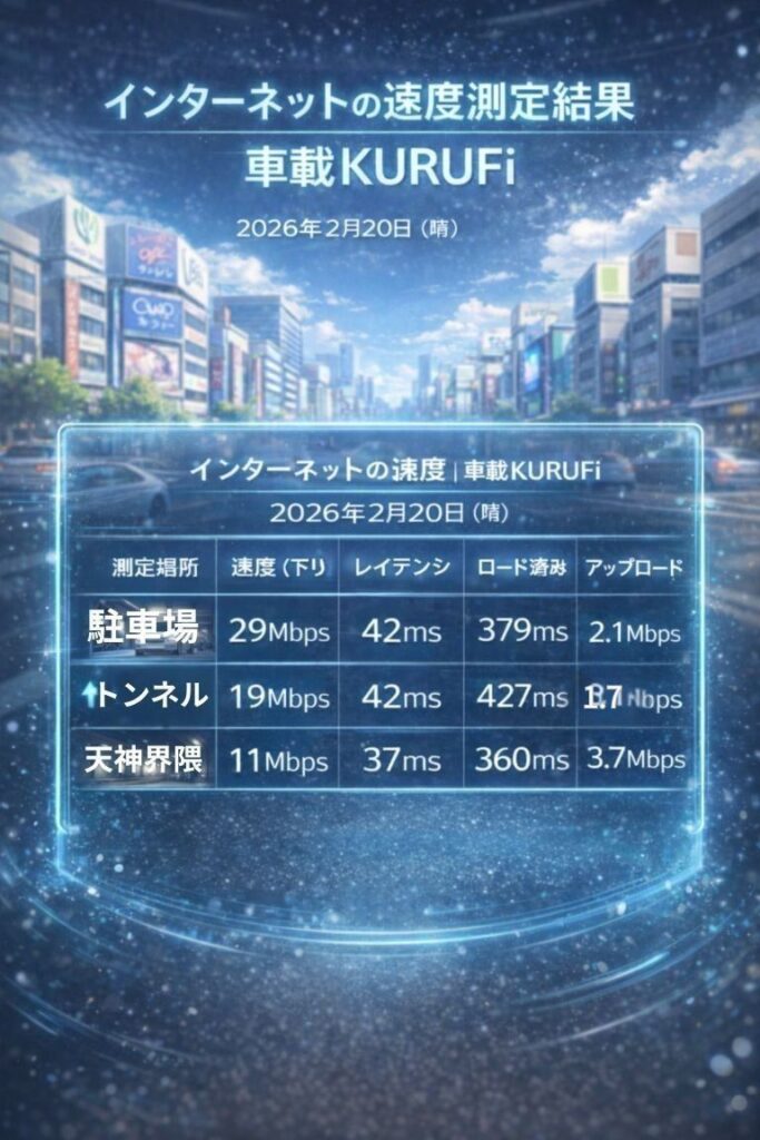 ※福岡市南区駐車場での速度テスト:2026年2月20日時点