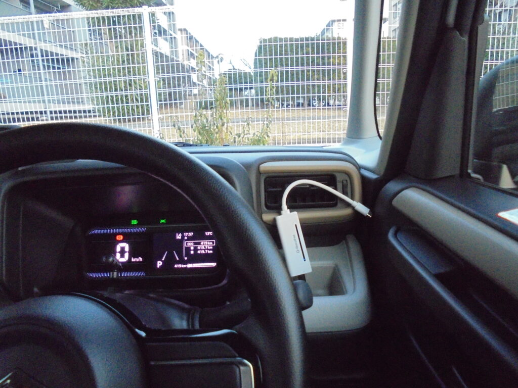 届いた端末を車のUSBポート(Type-C)に挿します。