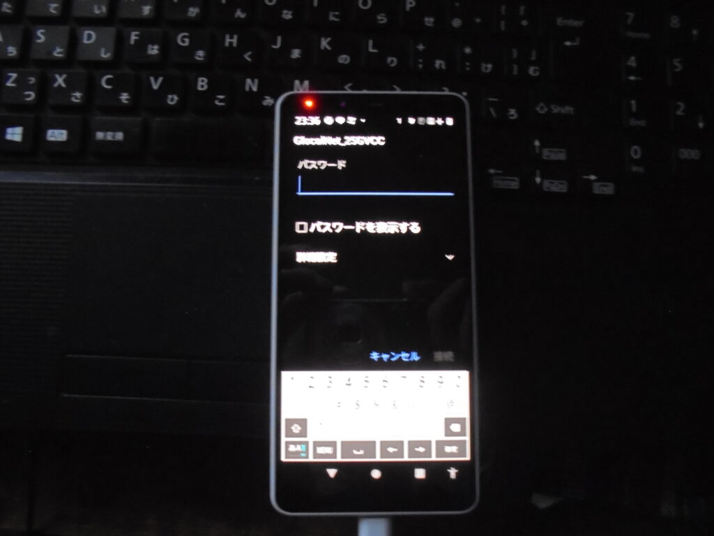 「GlocalNet_25GVCC」にパスワードを入力すればOKです。