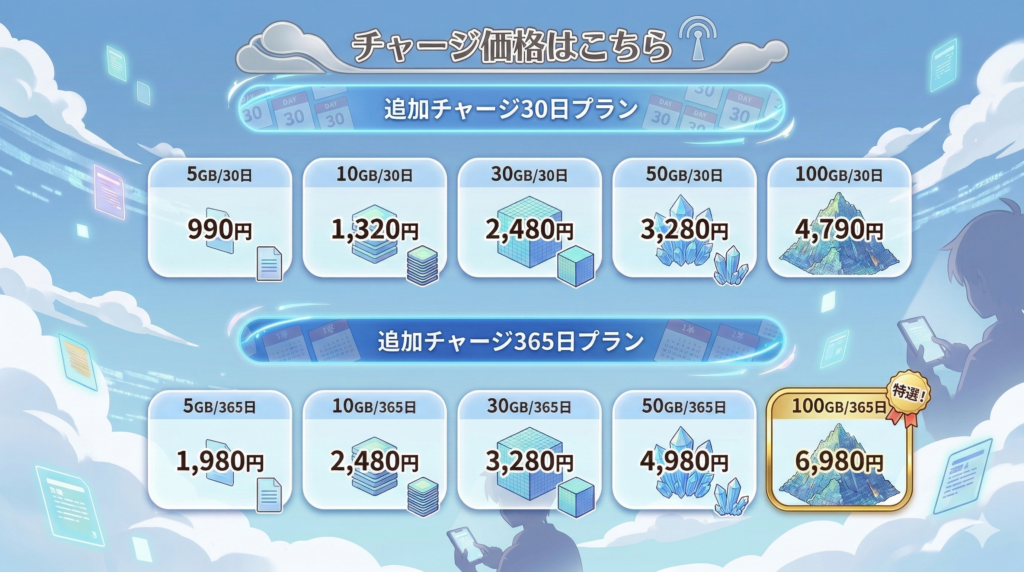 ギガを使い切ったらチャージをします。