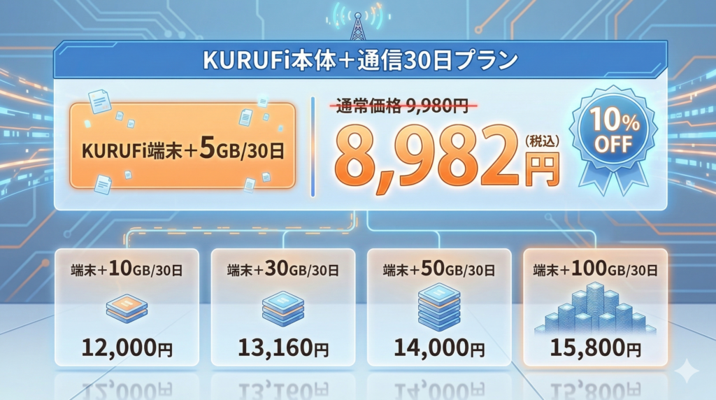 まだ購入していない方は、料金プランや詳細をクルマのWiFi「KURUFi」の公式ページで確認してください。