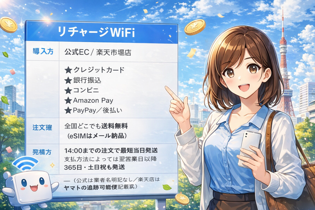 - リチャージWiFiはサポート窓口が複数用意されており、土曜対応がある点が強みです。