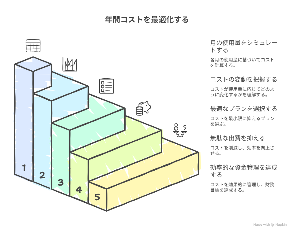 - 月の使用量別「年間コストシミュレーション」