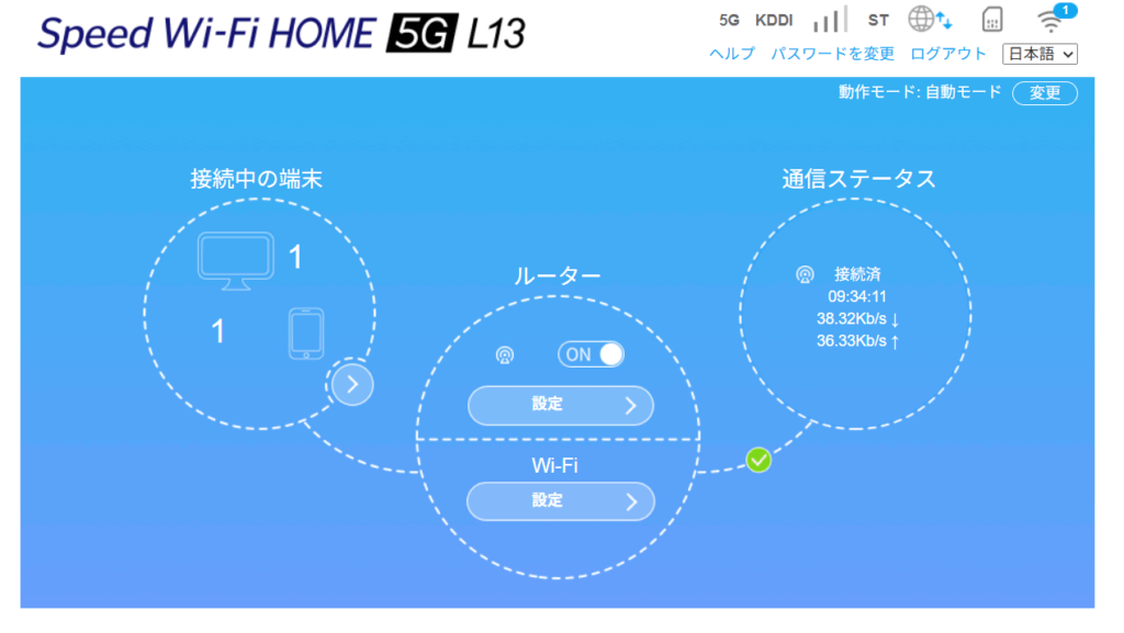 SpeedWi-FiHOME5G /L13は、UQWiMAXやauが提供するZTE製の最新ホームルーターです。